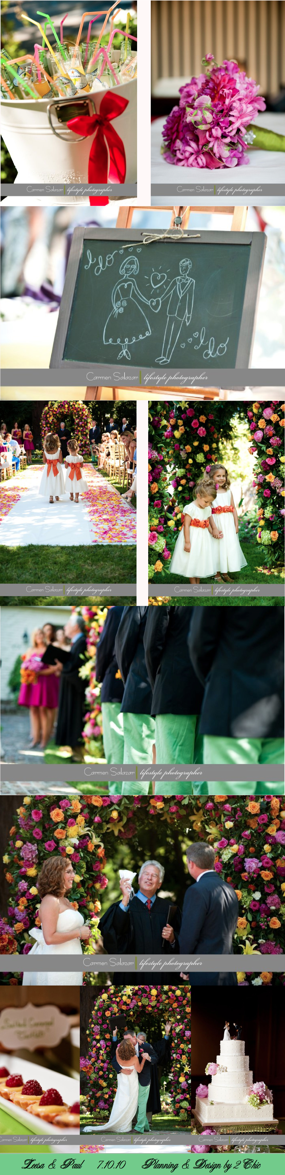 Wow! We are so excited to share these photos, by Carmen Salazar with you! Leesa and Paul’s July wedding was nothing short of breathtaking. The bright colors, the beautiful setting and of course, an amazing bride and groom made this one for the books! I worked closely with Leesa’s lovely mom, Esther and florist Cathy Brooks of Visual Impact Design to bring her vision of bright colors and a garden feeling to life. The larger than life chuppah, the adorable flower girls, the guys in their navy blazers and green pants and the bride with a beautiful flower in her hair were the highlights of the day. The reception that followed was also quite the spectacle! Stay tuned for those photos ~ more to come soon!