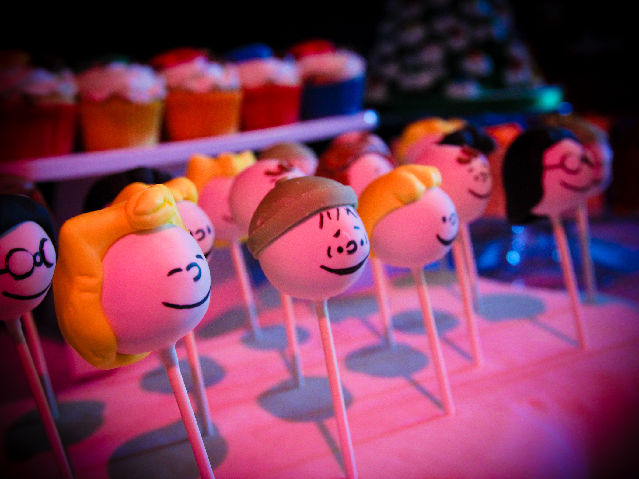 The party was announced to the children with the most amazing invitations I have ever seen! A Charlie Brown Christmas DVD all wrapped up pretty in a box with snow and lights inside. Once they arrived at the party, Cirque Performers dressed as Charlie Brown, Lucy and Linus were the hit of the show! We also had fun carnival games and crafts, the most amazing dessert bar ever created, andof course, Santa Claus!