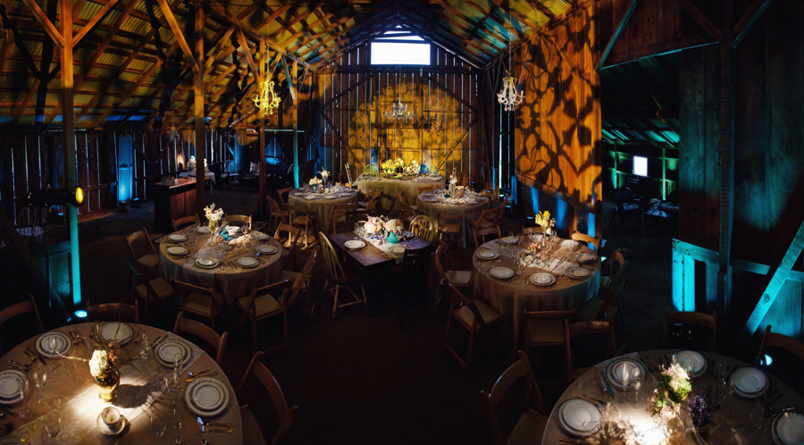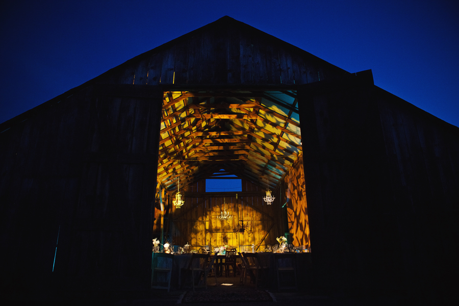 Love the chandeliers in the barn. Such a great contrast.