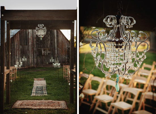 The Team: Photography: XSight | Shoot Design & Coordination: 2Chic Events & Design | Venue: Varozza Ranch, via Where-I-Do.com | Chairs, Linens & Service ware: All Time Event Rentals | Chandeliers, Specialty Chairs, Altar, bar, Outdoor furniture & specialty decor: The Find | Floral Design: Bloomers Floral Design | Lighting Design: Atmosphere Lighting | Cakes: Sweet Cakes by Rebecca | Dress: Miosa Couture | Hair and Makeup: Makeup by Jenifer Haupt | Jewelry Design: The Find