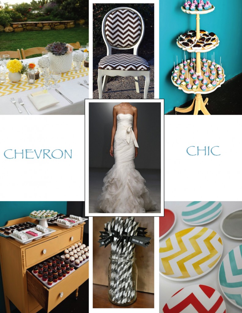 Not sure how to include the chevron print in your wedding design? Since chevron is already such a bold print, you won’t need to over accessorize. I adored the yellow and turquoise pops of color and decided to pull some pieces of shabby chic furniture from The Find into the design. You could also throw in a little color with a table runner, or in your plates or chairs.