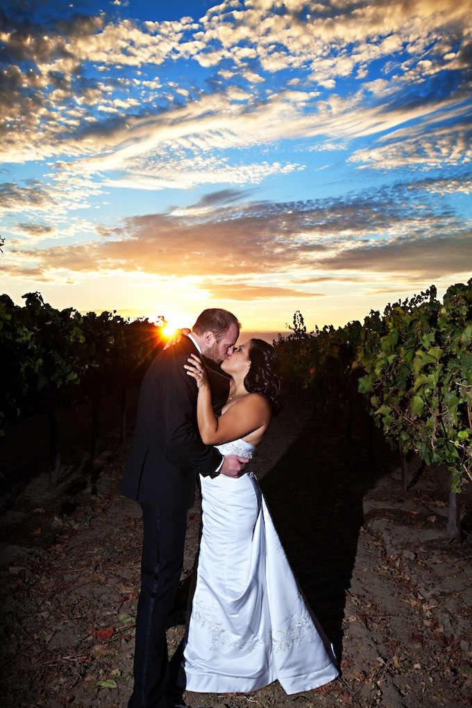 Andrea & Jim, who are one of the coolest and most gorgeous couples under the sun, were married at Wilson Vineyards on October 2 of 2010. A little bit of gorgeous work by vendors mixed in with some DIY touches came together magically to create this fall inspired wedding that was full of fun details. Everything from Andrea's gold shoes to her stunning bouquet by Botanica Floral Designs were the perfect feminine {maybe even a bit sassy} touches that Andrea dreamed up. And Jim, well…Jim LOVES pumpkins so we made sure to bring those into the mix. Thanks to Jacqueline Photography for the gorgeous photos. Ummm, you can't buy a sunset this amazing! Way to work it Jackie!