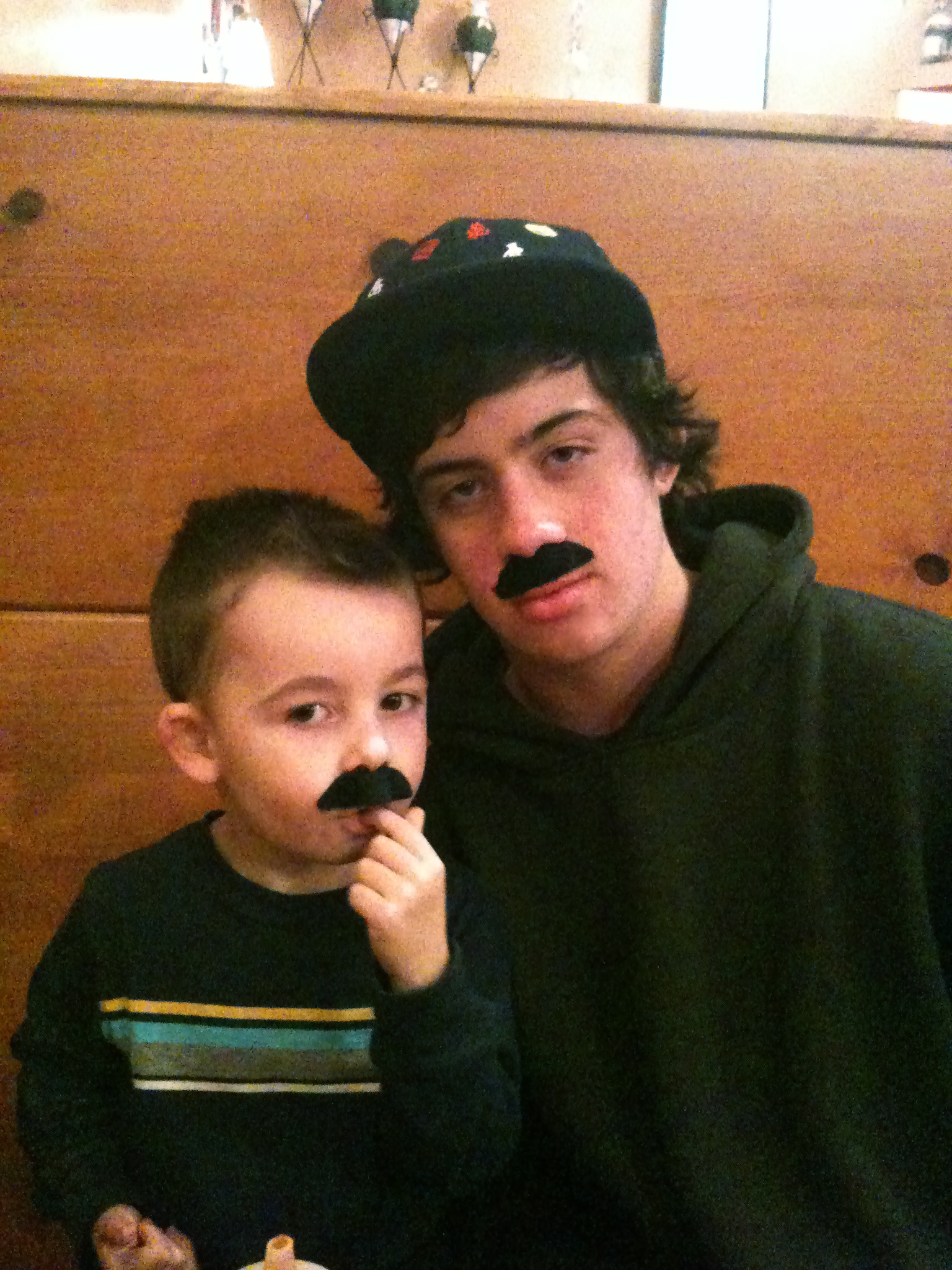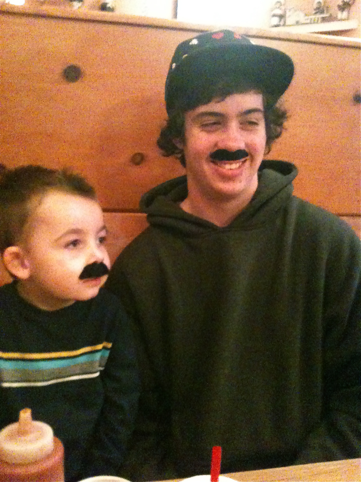 Its actually a very nice balance that we have going on over here and I wouldn’t change a thing! They make me laugh {hard!}, make my want to pull my hair out, and most of all, make me thankful for their love. They both should have been named “Mr. Personality” but we went for Jonah {4} and Asher {16}. Enjoy a little glimpse into my silly, crazy, wonderful world via the photos below that make me laugh every time I see them. These photos {taken with my iPhone while I laughed uncontrollably ~ hence the bad quality} of my Dos Muchachos were taken during dinner at our favorite Mexican restaurant and I’m not sure I’ve ever laughed so hard!