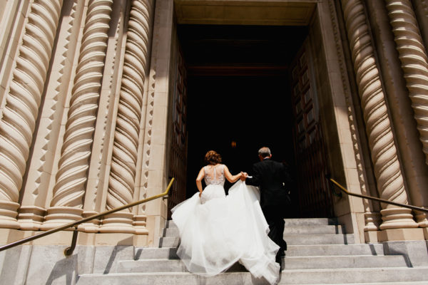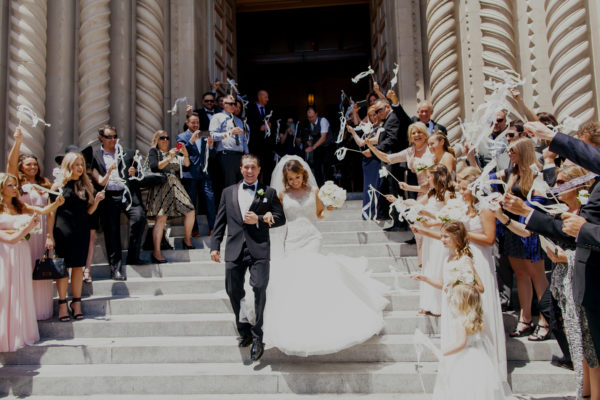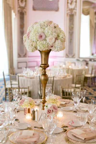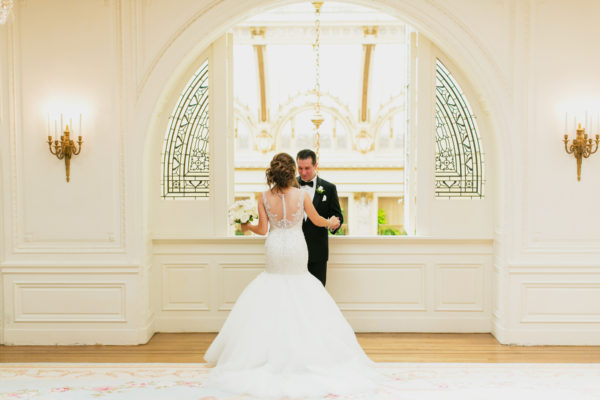 As the scene unfolded for a gorgeous wedding reception in the works at the Palace Hotel, Brooke and Brandon exchanged their vows at St. Peter and Paul Church. From beginning to end, this gorgeous San Francisco wedding was filled with pure elegance; from the absolutely stunning dress that Brooke wore, to their vintage Rolls Royce getaway car and the towering florals at their reception – it was all just dreamy.