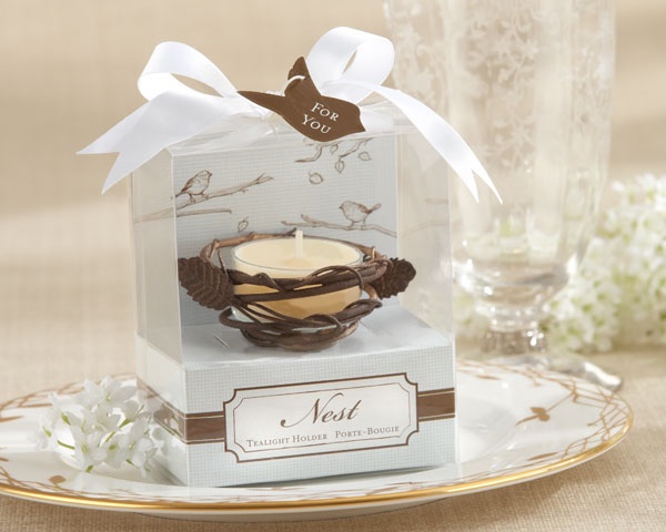 This is just an example of one of the creative favors we love for this year. It’s thoughtful, personal, useful. Here are another few favor ideas that I love: A donation to a charitable organization in lieu of favors {you can let guests know of your donation on a little note, printed on paper with flower seeds embedded in it from Flower Seed Paper}, edible favors from one of your favorite bakeries or hand made by you, and something I will always be a fan of ~ candles. Below are some charming love nest tealights that I adore, along with a super cute favor box one of my brides will be using for her favors, traditional South American cookies, at her wedding in May! Lovely, lovely!