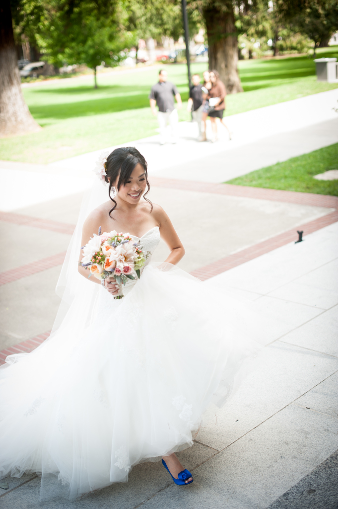 Fonda and Nick were married at the beautiful Memorial Auditorium in midtown Sacramento, which is quite a stunning spot for a wedding. With it’s art deco style architecture, a bit of old world charm and a lighted arch around the stage area, it has quickly become one of my favorite spots to create beautiful weddings.